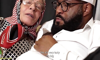 Fucking the granny in the couple's sofa