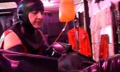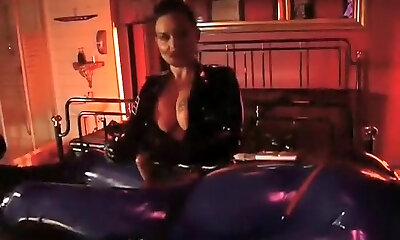 Submissive guy in latex stuff gets treated really hard by obscene Lady Lola