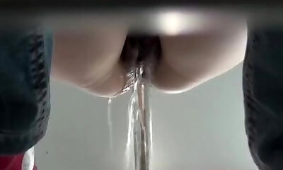 Piss pouring out of hot vagina on toilet voyeur scenes