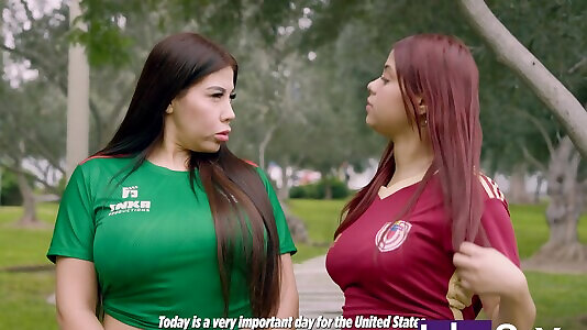 Two kinky latinas flashing their pussies on a public bus and seducing a guy for a threesome in a taxi