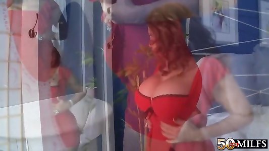 Hot busty friend is mum milf with huge boobs is seduced by a horny guy and lets him play with her tits and gives him a blowjob