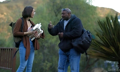 Tiny Blonde Babe Mazy Myers Sucks Exceptionally Fat Big Black Cock Which Hardly Fits In Her Little Mouth