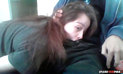 Diligent slut tries to push her bf's spunk-pump as deep as possible into her throat to get a cumshot