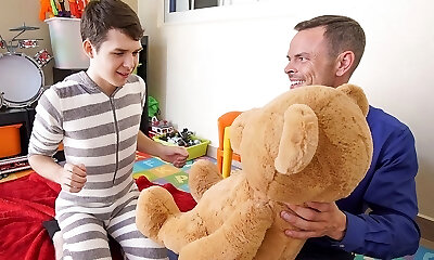 Twink Stepson And Step-father Family Threesome With Stuffed Bear