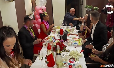 Perverse Family Involve a Subordinated Slim Maid Into Wild Dirty Orgy During The Dinner In the Mansion