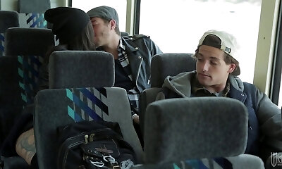 Couple fucks hard on a bus filled with curious viewers