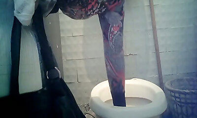 Piss Fetish Spy Rest Room Big Oiled Tits Big Ass Female Pee Crevice Close Up Wet Pussy