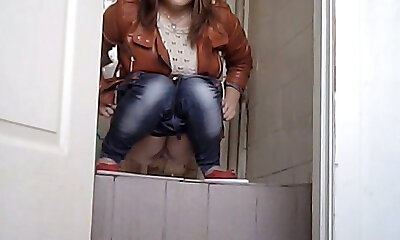White amateur lady in blue jeans uncovered on cam in the toilet