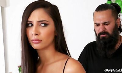 Mega buxomy babe Ella Knox gets messy facial cumshot after hot glory hole sex